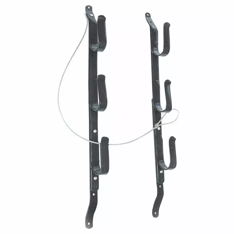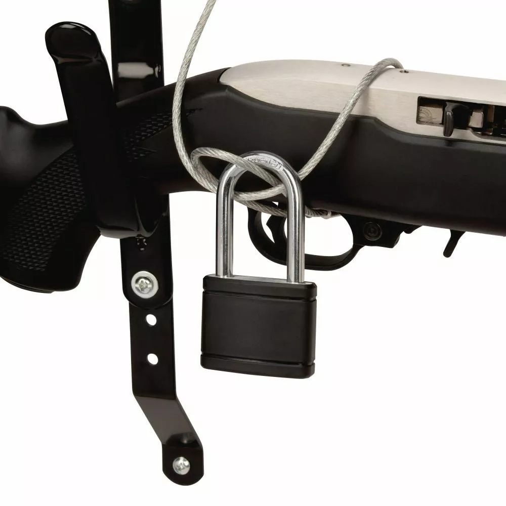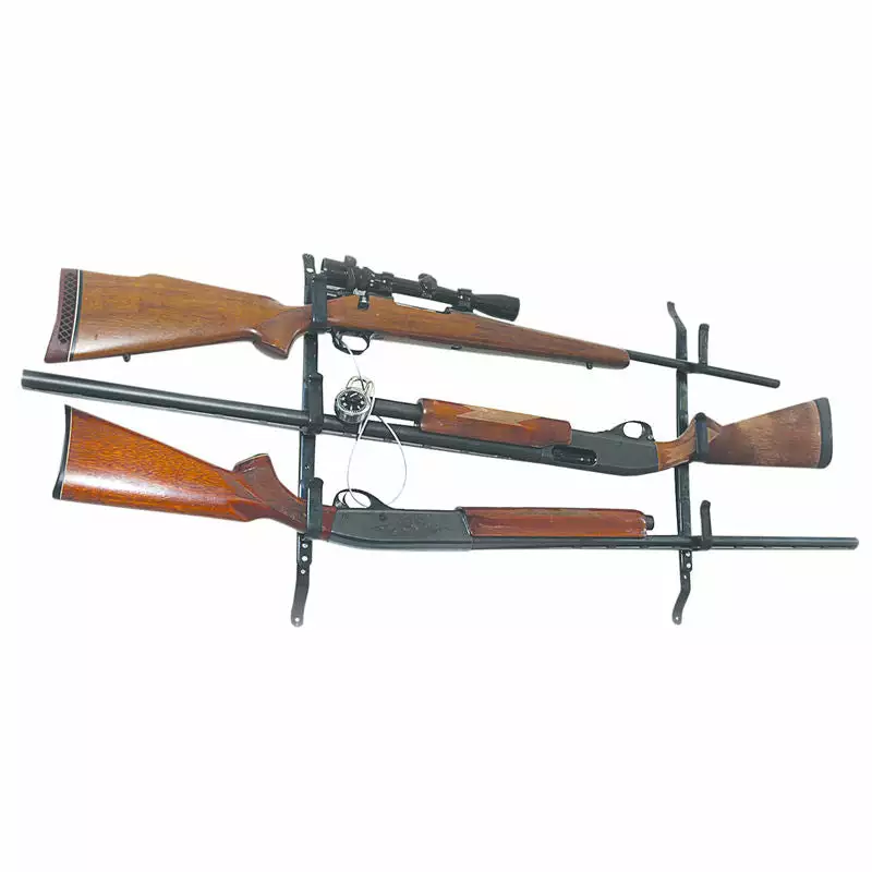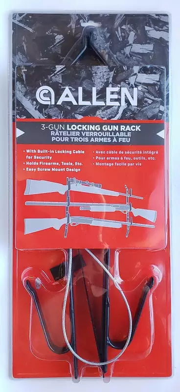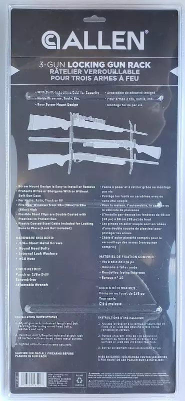 Securely fits in your truck or on your wall. This locking gun rack is made with high-quality steel construction. This locking gun rack holds up to three guns and adjusts from 18-inches to 26-inches. Attaches to walls or over windows. Plastisol coating resists scratching guns and tools, and the plastic-coated steel cable for securing guns is included. Steel clips can be flexed to hold guns and tools more securely. Required for installation: 1/8-inch drill bit, drill and screwdriver (not included).