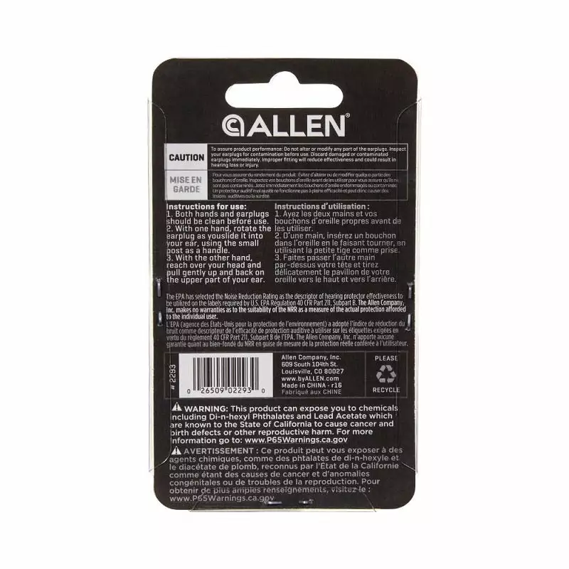 Allen Ear Plug Deluxe with Cord 2293