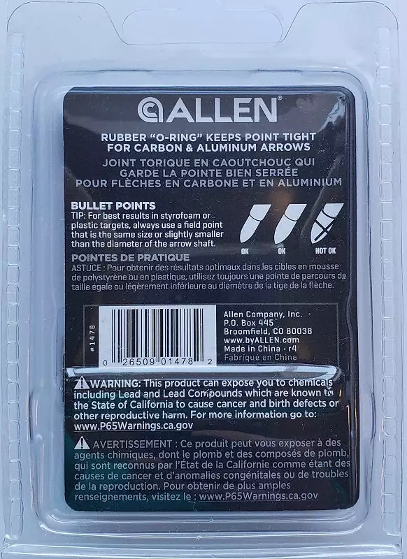 - Durable design made with a rubber O-Ring to keep point tight – eliminates the  need to tight field points after each shot