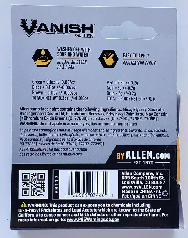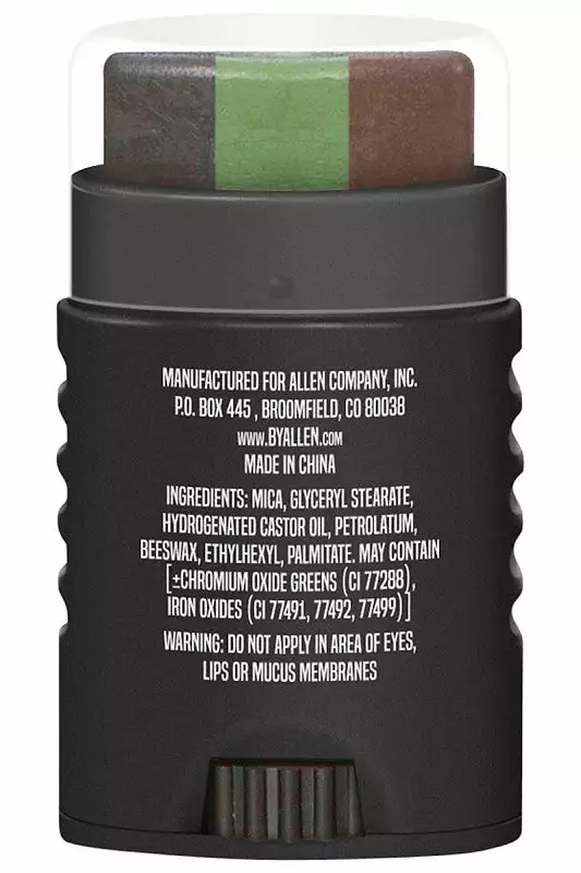 Stay concealed when you take your next shot with Allen’s 3-Color Camo Face Paint Stick. This easy applicator has olive drab, black and brown in one twist-up stick. Simply mark across your face and hands to break your shape up so the game doesn’t know you’re there until it’s too late.