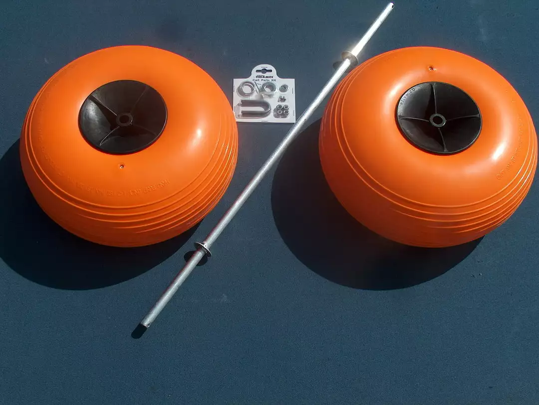 Poly Wheel Kit for Large and Jr. Carts.ย ย Includes two, 15″ X 7″ย ย large Poly Wheels, (200 lb weight capacity- non hwy)ย oneย axle & one stainless steel mounting hardware kit; 3/4″ solid aluminum axle, & aisr needle valve
