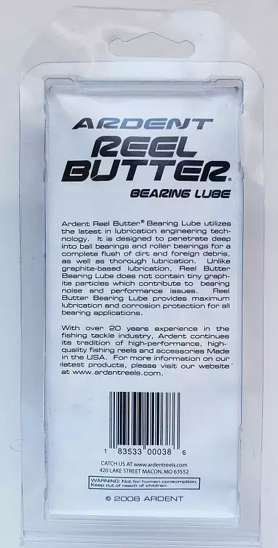 Protect your ball bearings and roller bearings from dirt and debris with the Ardent Reel ButterĀ® 1 oz. Bearing Lube. The pinpoint applicator tip allows you to apply the lube easily in hard-to-reach areas, and the lube is 100% synthetic to safely prevent your bearings from seizing up and keep them running smoothly.
