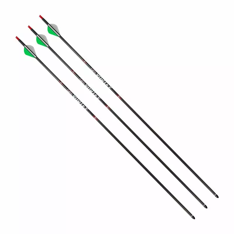 Barnett Outdoors Vortex Arrow 3-pack are 30 inch pre-cut carbon arrows with a 400 Spine which is recommended for bows with a draw weight of 40-60lbs. They are a standard .244″ diameter arrow. The pack comes with 3 100 gr field points for practice shooting. The arrows use a high performance profile vane.Â