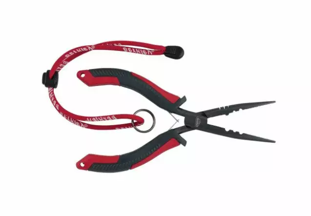 Corrosion resistant carbon steel jaws with an ergonomic co-molded handle design and adjustable lanyard create ideal pliers for managing your catch, tackle and gear.