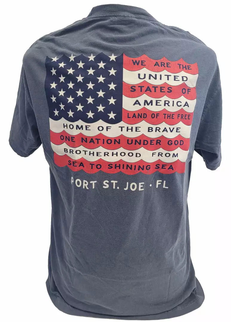 Made from 100% cotton, the Comfort Colors New Wave Flag shirt features an American flag featuring the following words: