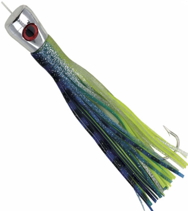 Concave head produces a fish attracting bubble trail when trolled at 5 to 10 knots. Great lure for Marlin when combined with horse ballyhoo, deadly on sailfish, dolphin, and tuna.