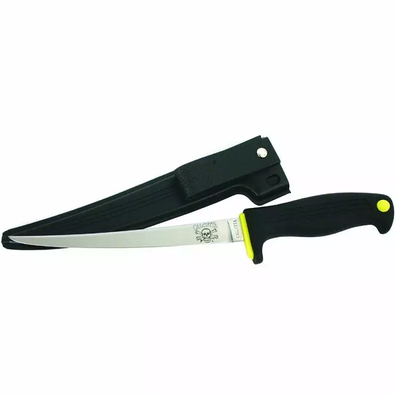 Features high carbon stainless steel blades. Authentic Calcutta fish fillet knives offer the top quality craftsmanship and performance that sportsman and outdoor enthusiasts demand. Slip resistant handles and Kershaw’s famous “Shaving Sharp” edge make fish cleaning easy, even in wet conditions. Includes Sheath.