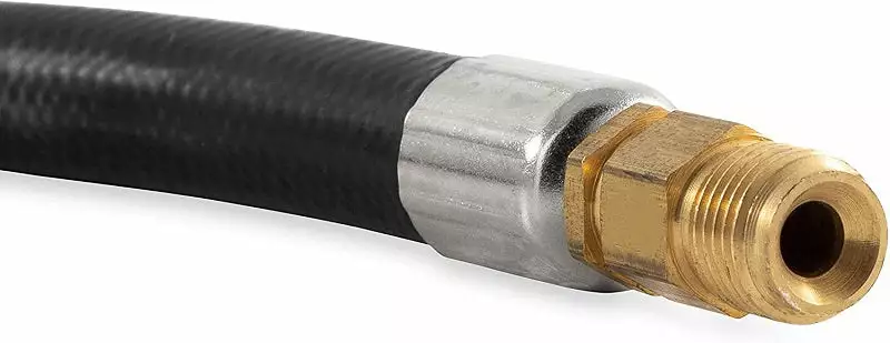 Camco’s 15″ Pigtail Propane Hose Connector is designed to connect a propane cylinder to an RV or trailer propane regulator. It has a ACME nut x 1/4″ inverted male flare. It is rated for 200,000 BTUs per hour. Safety features include thermal protection in case of fire and excess flow protection in case of broken gas line. You can use the pigtail hose with a 20 lb or 30 lb refillable propane tank and connect it to a regulator or 4-Port Brass Tee. It can also be used to connect to an installed 4-Port Tee as an auxiliary propane supply.