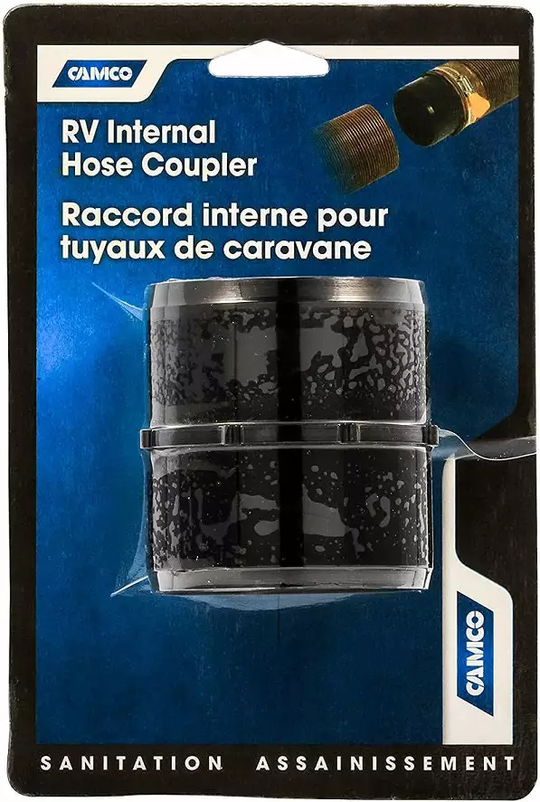 Camco RV Internal Hose Coupler Fitting allows you to connect two sewer hoses together for a longer reach. This hose coupler features quick, secure and airtight connection. It is non-restrictive and allows free flow of water. Stores with hose in standard bumper.