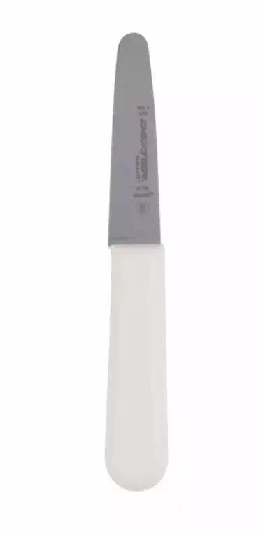 This knife has a textured, slip-resistant, easy-to-clean polypropylene handle for both high and low temperatures. The blade is manufactured from proprietary DEXSTEELâ„¢ stain-free, high-carbon steel. Made in USA. Items marked with the NSF logo are NSF Certified.