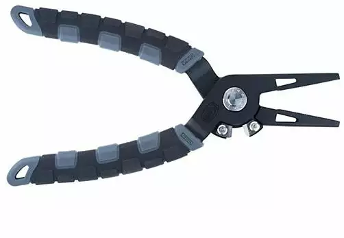 These rigid pliers have a corrosion resistant coating, includes replaceable line cutters, and knot cinching holes in the jaws.