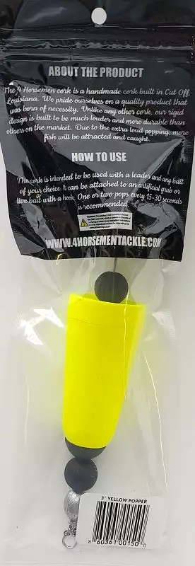 Four Horsemen Tackle Concave Popper Cork Yellow 3″ 1pk