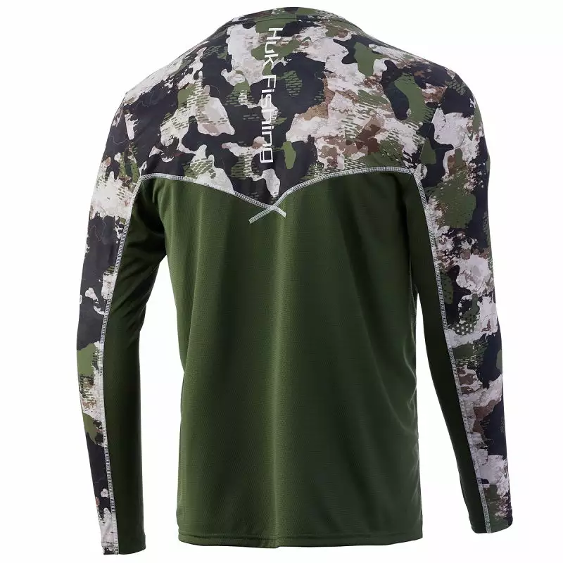 The Huk ICON X Refraction Camo Shirt, featuring our new exclusive camo pattern, is the most technically advanced performance fishing shirt designed for hardcore anglers. This breathable material spreads moisture over a larger surface area, creating a rapid drying effect that cools the body after coming into contact with perspiration. The synthetic fibers allow air to pass through the shirt and contain a hydrophobic coating that transports sweat to drier areas, away from the skin.