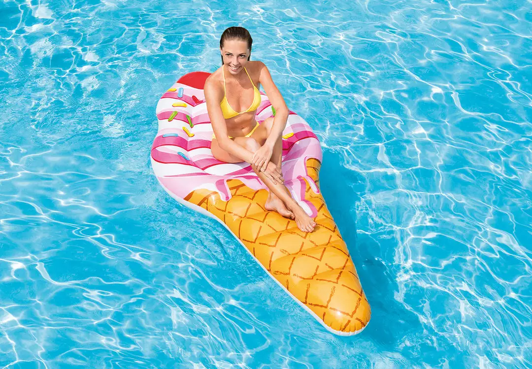 This realistic Intex colorful ice cream design mat is great for playing and lounging.
