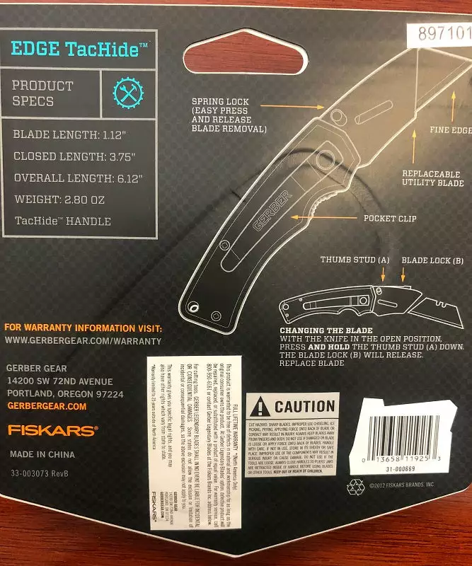 This utility knife is loaded with on-the-site features: a spring lock for easy press and release blade replacement, a pocket clip for easy carry, and an easily available utility blade