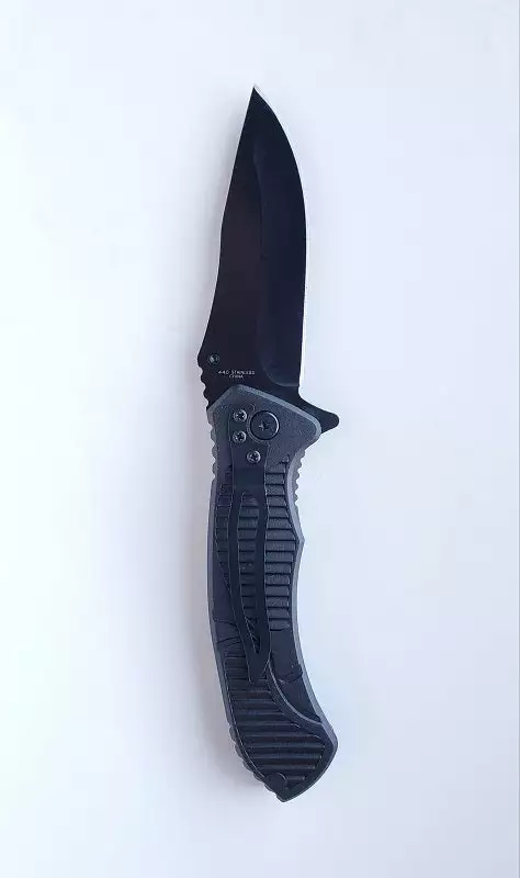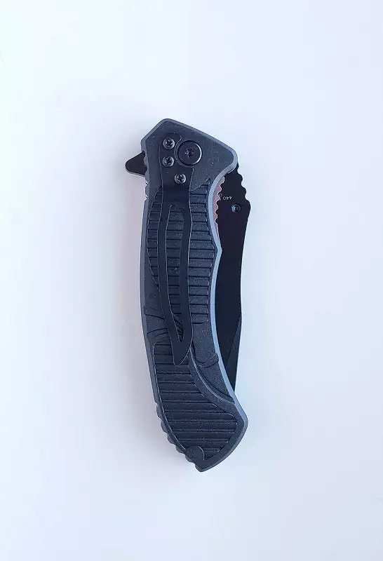 Complement your camping or hunting gear with this durable 440 stainless steel liner lock knife folding blade.