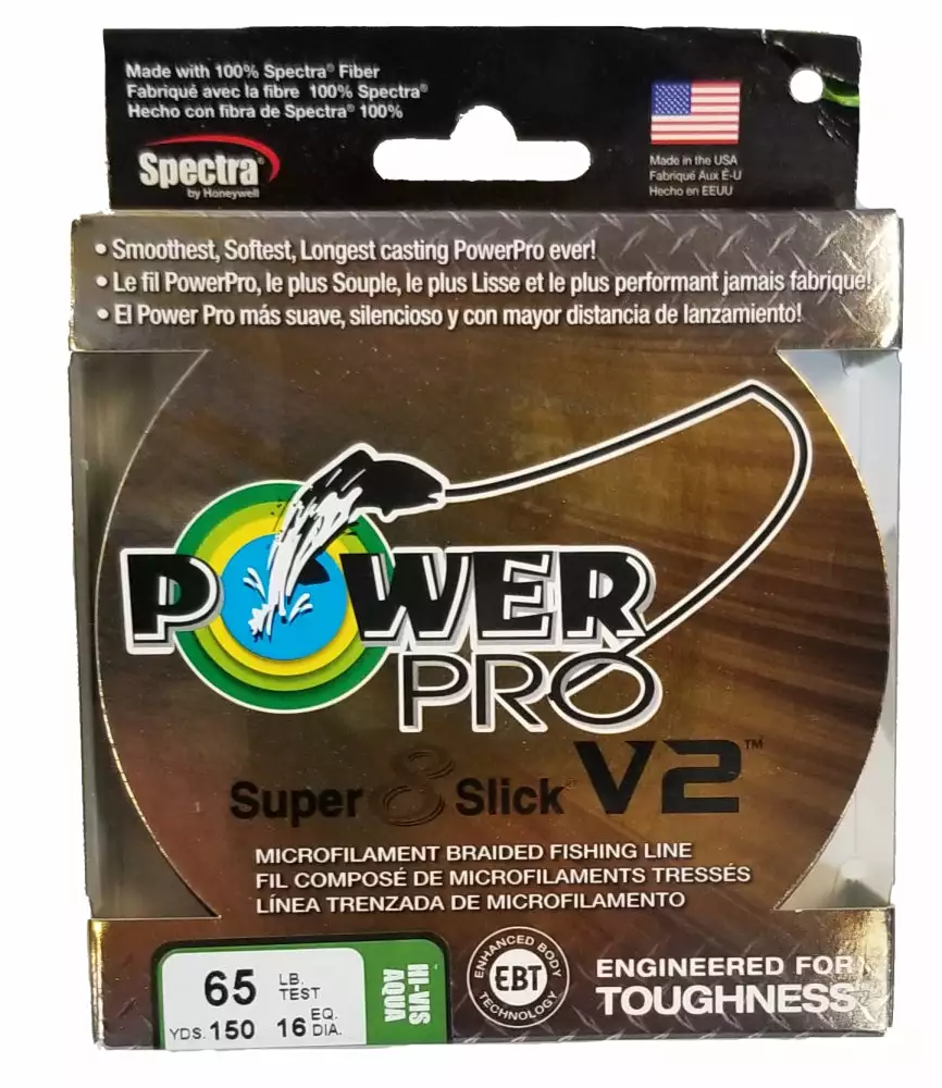 Power Pro Super 8 Slick V2 Hi-Vis Aqua 65 lb 150 yds Braided Fishing Line