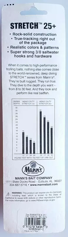 Mann’s Stretch 25+ Trolling Lure Gold/Black 8″ 1pk