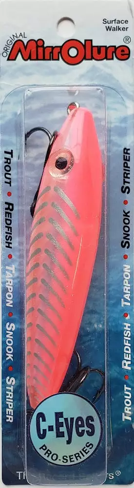 Features natural 3-D eyes, fish-catching finishes and premium black nickel hooks. The C85MR has that bright, reflective, luminescent insert that attracts fish. With a twitching retrieve, this Top Water Dog darts from side-to-side, calling in viscous strikes. Precision weight design allows Pro Dog JR. to cast long distances and walks with ease. The perfect “search bait” when probing the flats.