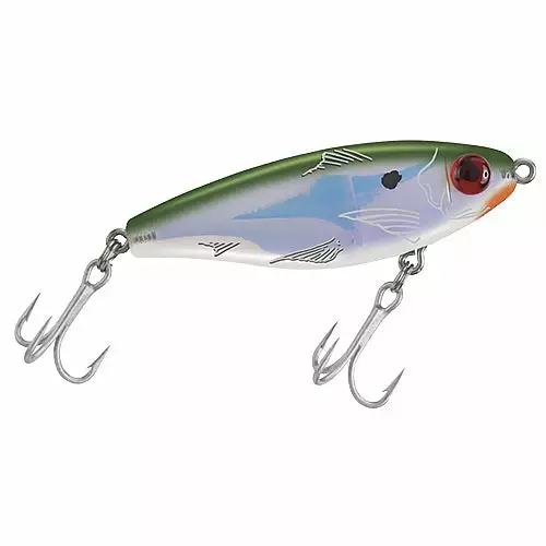 Twitching side to side like a wounded baitfish on the retrieve, this lure proves you can’t sneak an easy meal past a hungry fish. The XXL-wide body profile and realistic baitfish pattern induces violent strikes. Reflective, luminescent inserts, fish-calling rattles and realistic 3-D eyes create an irresistible combination to trout, redfish, snook, striped bass and tarpon. Each comes rigged with extra strong hooks.