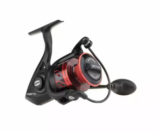 The PENN® Fierce® III spinning reels are available in a range of sizes, from 1000 to 8000. Featuring a full metal body and sideplate, along with PENN HT-100â„¢ carbon fiber drag washers, the Fierce III can handle anything inshore or nearshore. A 4+1 shielded stainless steel ball bearing system ensures smooth retrieves while the heavy-duty aluminum bail wire and superline spool allow for easy line management.Â