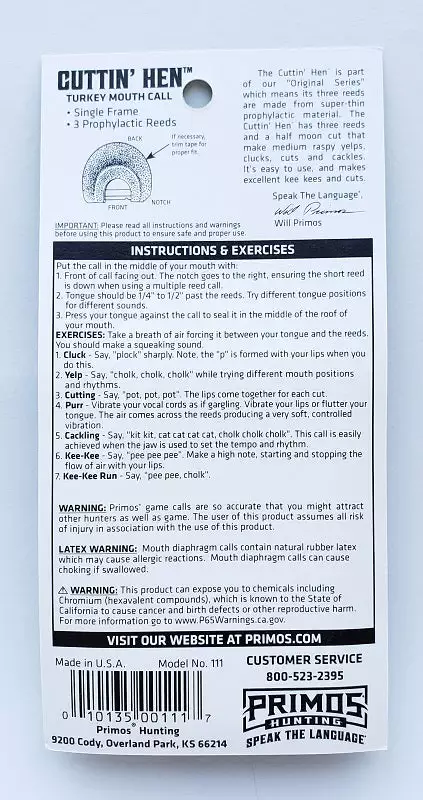 Primos Cuttin’ Hen Turkey Mouth Calls 1 per pack P111