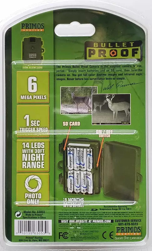 The Primos Bullet Proof Camera is the simplest camera to use, period. Simply insert batteries and an SD card, then turn the camera on. You get full color daytime images and infrared night images. Never before has surveillance been so simple.