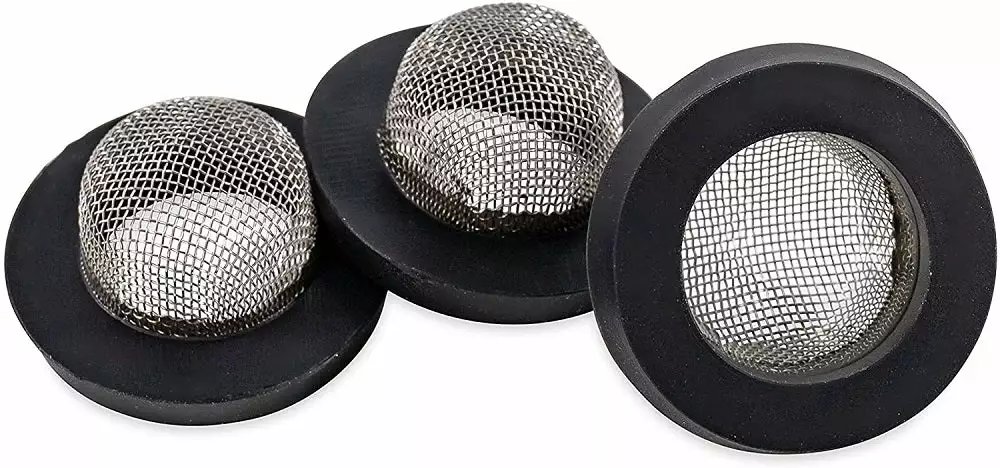 Filter trash and debris from your water system. Washer fits any standard garden hose female coupling. Stainless steel 60×50 mesh traps dirt particles before they enter your RV system. Ideal for washing machine hookup.