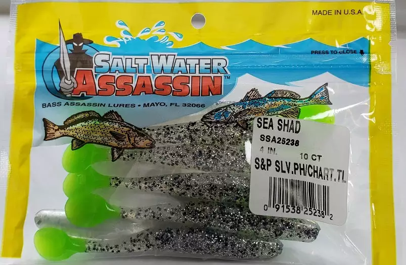 SaltWater Assassin Sea Shad Silver Phantom/Chartreuse 4″ 10pk