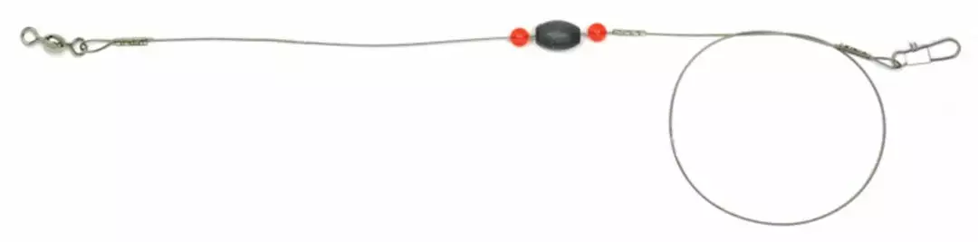 Made with 45lb. nylon coated wire. Rigs come with a 1/2 oz slip egg sinker, a Size 3 snap, and a Size 5 swivel.