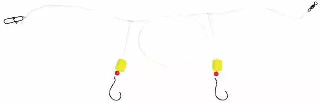 Pompano Circle Double drop circle hook rigs featuring Laser Sharp by Eagle Claw circle hooks. PPR20 model has 2/0 circle hook with yellow floats.